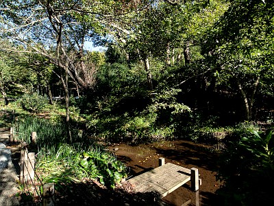 当地域は泉の多い地域で、天王森泉館の背後には池やワサビ田、竹林などが整備されている。