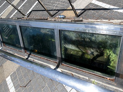 旧横浜居留地煉瓦造下水道マンホールは明治15年頃の竣工。国登録有形文化財。明治14~20年、関内外国人居留地にて下水道改造工事で卵型レンガ管と陶管の下水道が整備され、うち下水幹線7本とマンホール37ヶ所は煉瓦造であった。日本人設計では初の近代下水道の遺構。
