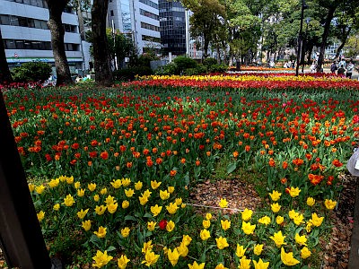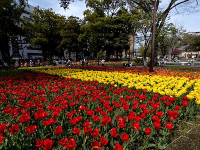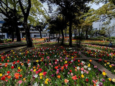 チューリップは約70品種14万球が植栽され、4月に見頃となる。