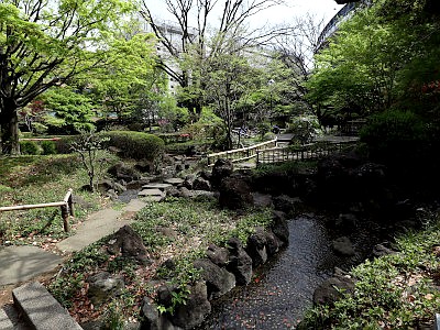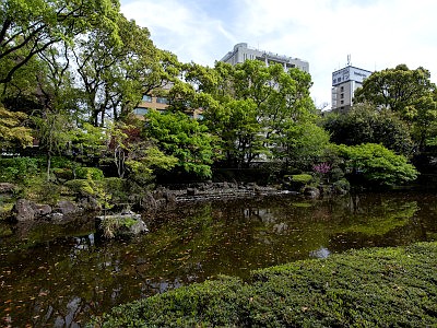 横浜公園の一角には、昭和53年に日本庭園「彼我庭園」が整備されている。