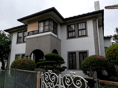 山手267番館(Bielous邸)の玄関棟・東棟は昭和3~19年頃の、西棟は同22~24年頃の竣工。横浜市認定歴史的建造物。