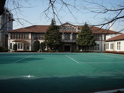 かつては校外から上のような姿も見ることができたが、現在はその前に新たな校舎が建って見ることができない。