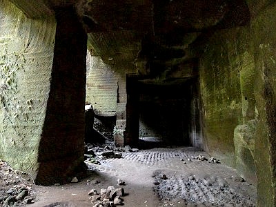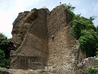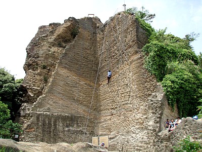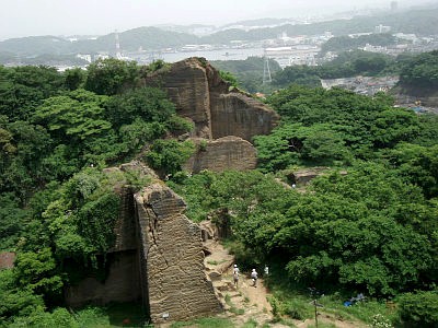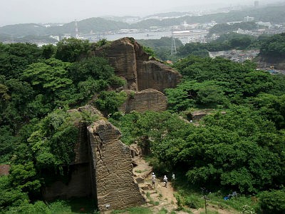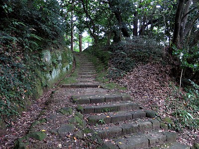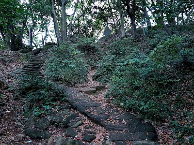北方から神武寺へ向かう裏参道(池子参道)の登山口近くには、池子石の石切場跡が残る。