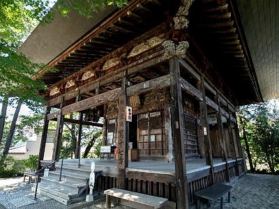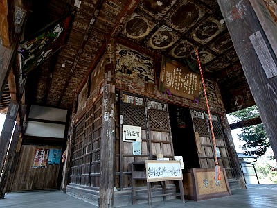 観音堂は江戸末期の建立。天井には花鳥画が描かれている。