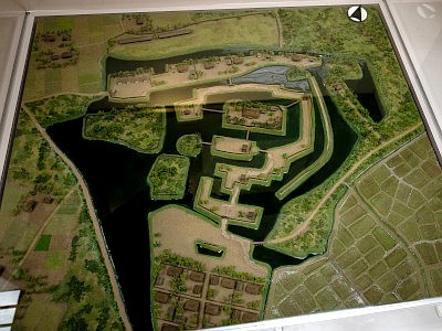 三重の堀と本郭を中心に、郭が同心円状に配置された城であった。