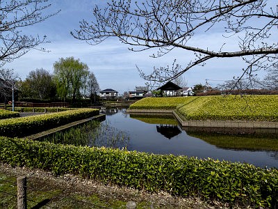 城跡として整備されている西側(水堀内に当たる)に、古民家園が設けられている。