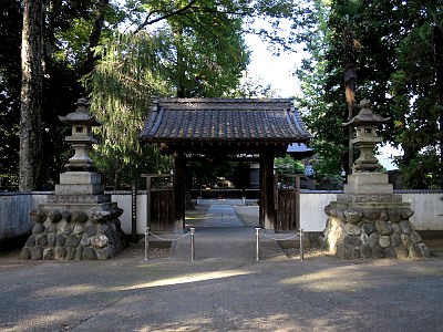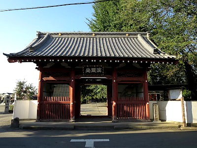 定門は1589年建立。深谷市指定有形文化財。定門の奥には本堂がある。