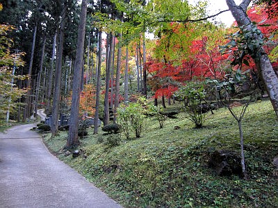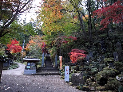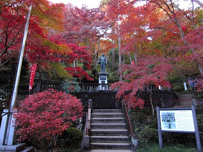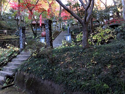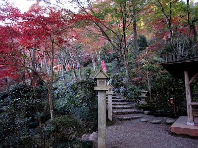 山の斜面を丸ごと利用した広大な境内は、紅葉の名所として知られる。