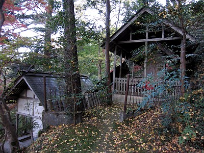 普寛霊神は江戸期の著名な木曽御嶽行者。山上には多数の社祠があるが、当社は頂上奥社に次いで社殿が大きい。隣は祈祷殿。