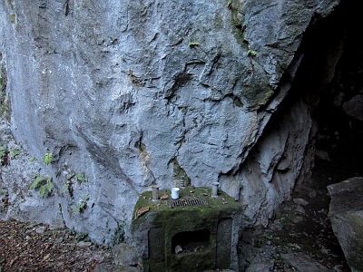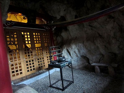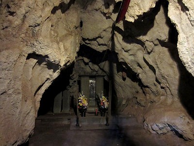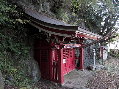 裏山の中腹に奥ノ院の岩窟(岩殿観音窟)がある。