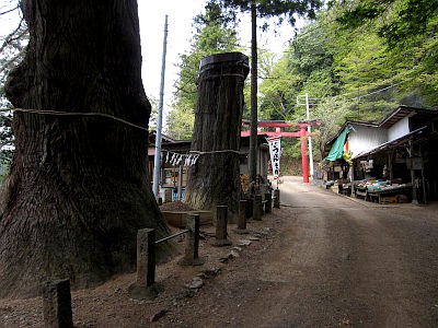 二本杉は樹齢800年で、子ノ聖が刺した箸が根付いたものと伝える。埼玉県指定天然記念物。