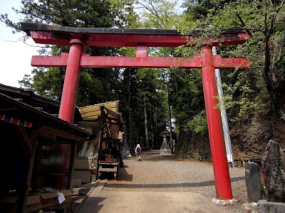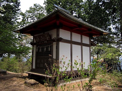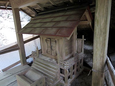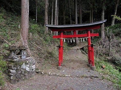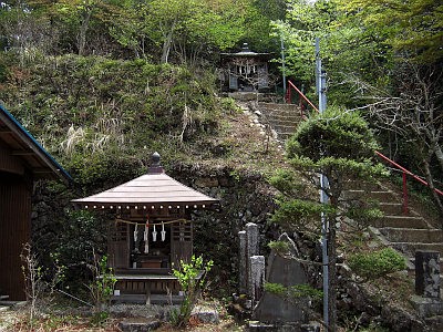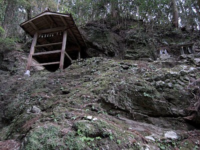 西吾野駅から子ノ権現への登山道沿いにある小社。岩にある窪みに懸造の覆屋が差し込まれ、祠が納められている。