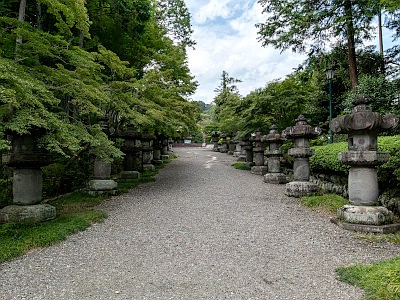 東京芝増上寺の徳川家霊廟から移した石灯籠が並ぶ。