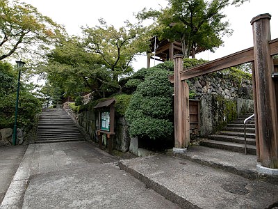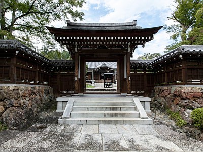 山門からまっすぐ進むと冠木門、その手前で左に曲がると中雀門への参道となる。