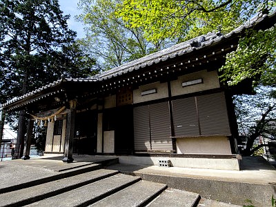 社殿は毘沙門山古墳という、6世紀後半築造の前方後円墳の上に鎮座する。
