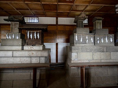 当社の主体は古江・宮田神社のはずだが、社号碑には境内社である浅間神社の名がある(初山詣の行われる浅間神社の方が知名度が高いからか)。