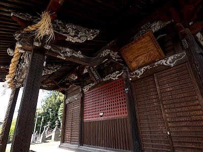 境内の掲示には、現在の堂は1706年に建立し、茅葺き・破風造りだったのを大正7年に瓦葺・入母屋造りに改造し彩色したとある。この記述に合致するのは拝殿部分となる。