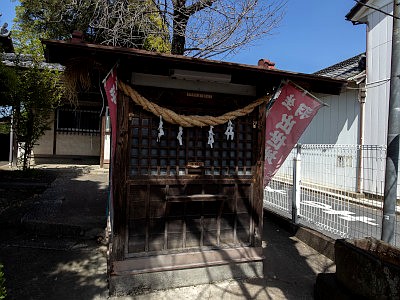 覆屋内の祠は左から順に、浅間神社(上浅間)、秋葉神社、宮田神社、古田神社。