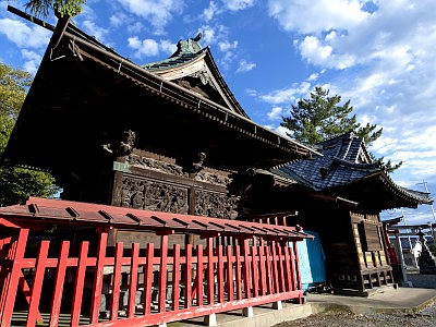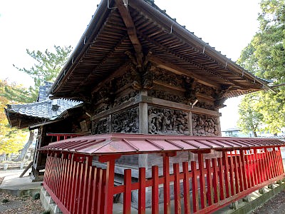 本殿も江戸末期の1865年建立。壁面全面に彫刻が嵌め込まれた比較的大型の本殿で、彫刻は羽生市の文化財に指定されている。