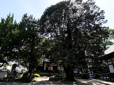 坐禅堂の前のビャクシンは埼玉県指定天然記念物。