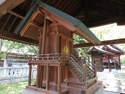別宮金山神社は川口神社の旧社殿を移築転用したもの。金山神社(金山権現社)は南北朝時代の勧請で、川口で繁栄した鋳物業の職業神。