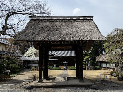 茅葺きの山門は江戸初期の建立。川口市指定有形文化財。