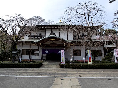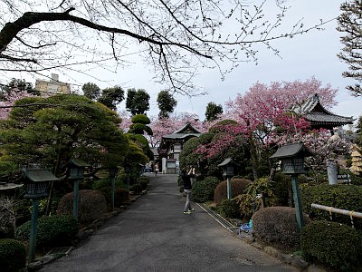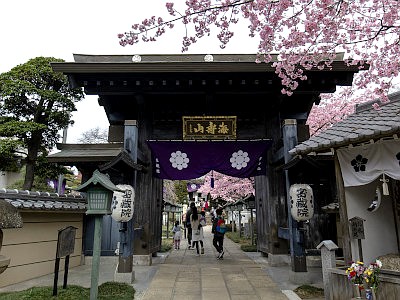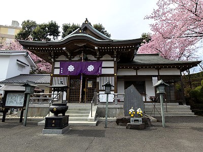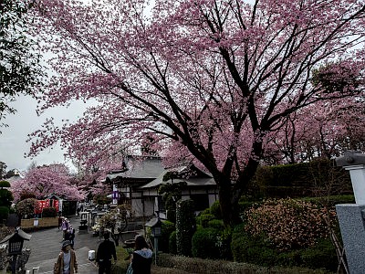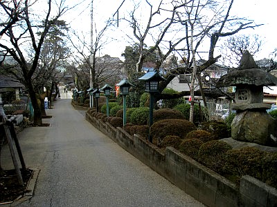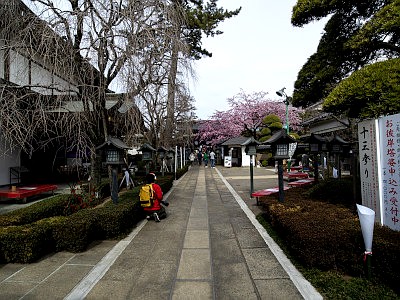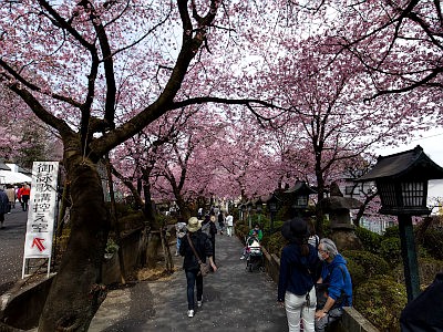 門前の表参道は安行桜の並木道となっており、3月の開花時期には桜まつりが開かれる。