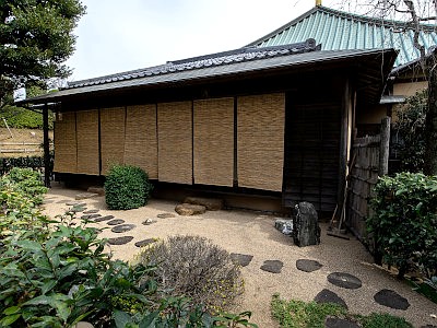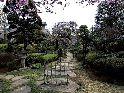 山門は、東京・内幸町にあった薩摩藩主島津家中屋敷の中門を、明治17年に移築したもの。