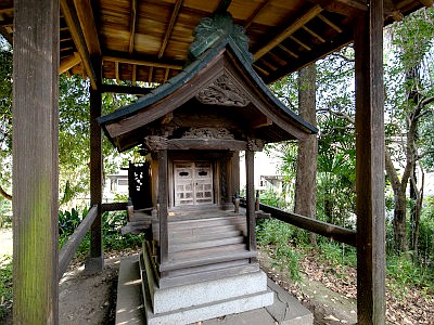 屋敷林内には鎮守の御嶽社(みたけしゃ)が立つ。