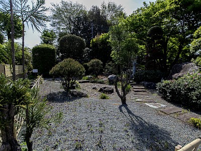 遠くに見える瓦屋根は常楽寺。