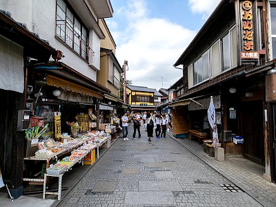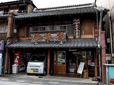 約20軒の菓子屋などが並ぶ。ランドマークとなるような建物はないが、独特の懐かしい雰囲気がある。重伝建地区の北西端と近い。