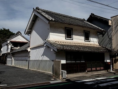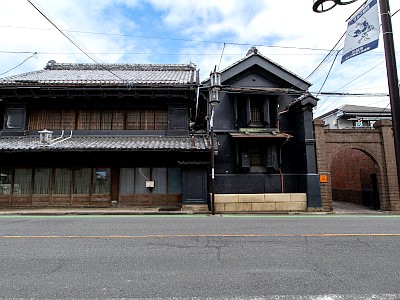 龜屋(山崎家)の建物を利用。左は明治5年竣工の二番蔵、右は明治33年竣工の四番蔵。