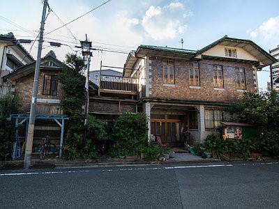 伊勢源は明治末期の竣工。隣との間に煉瓦壁が立つ。