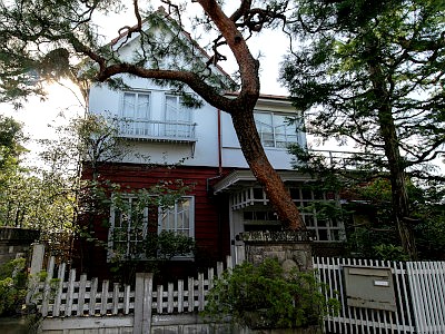 旧山崎家別邸は、龜屋の山崎家の隠居所として大正14年竣工。建物は国指定重要文化財、庭園は国登録記念物。重伝建地区をわずかに外れている。当所に関する詳細は旧山崎家別邸の記事を参照。