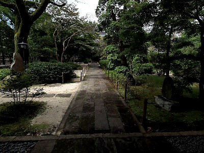 表通りに面して3門が並び、それぞれから良く整った境内へと参道が通じている。また茶室は島崎藤村ゆかりのもの。