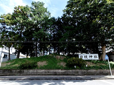 この土塁は仙波日枝神社古墳(多宝塔古墳)の遺構。