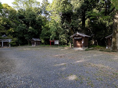 本殿を囲むように、八坂社、厳島社、松尾社、秋葉社、宮目神社、白山神社、稲荷神社、琴平社、神馬舎の祠が並ぶ。