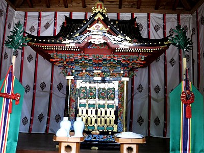 天満宮内には極彩色の宮殿(本殿?)が安置されている。