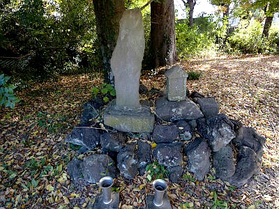 左から、瘤神社、疣大権現、疱瘡宮。疱瘡宮は、疣神社の右隣りに頭をのぞかせている四角い石碑。
