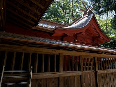 社殿は拝殿・幣殿・本殿を連結した権現造で1667年建立。埼玉県指定有形文化財。