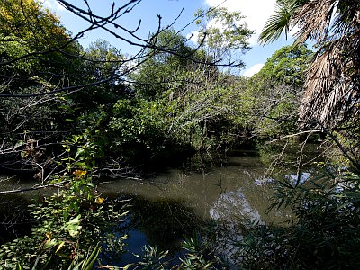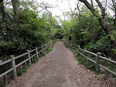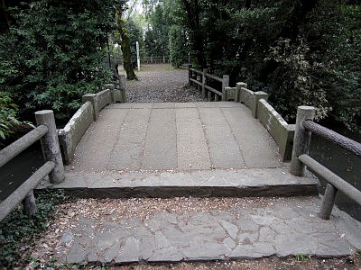 祭祀場への陸橋(御幸道、ごこうどう)。この道の両脇も池。