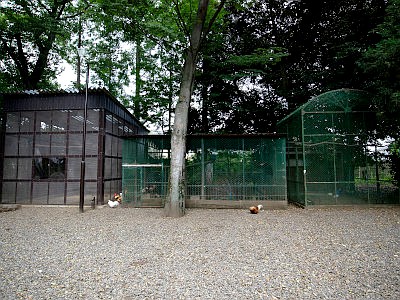 孔雀は昭和13年に朝香宮より下賜された3羽の子孫が殖えたもので、現在は約20羽。