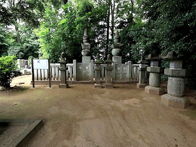 岩槻藩主阿部家墓所には藩主2代とその母、殉死した家臣の墓石が並ぶ。さいたま市指定史跡。