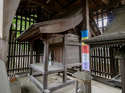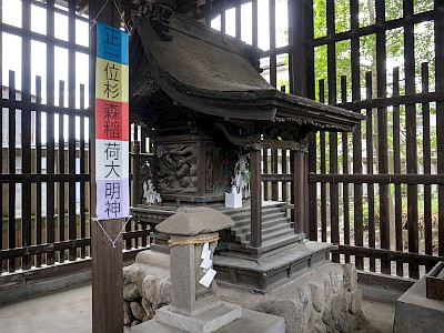 杉森稲荷社は、壁面に彫刻が嵌め込まれている。