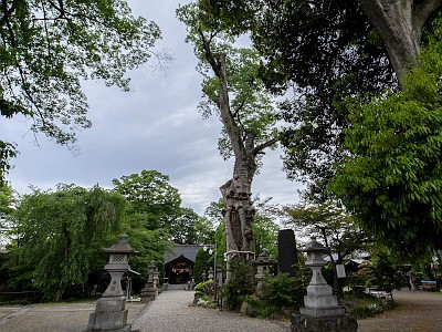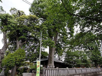神木のケヤキ2本は樹齢800年と推定される。埼玉県指定天然記念物。
