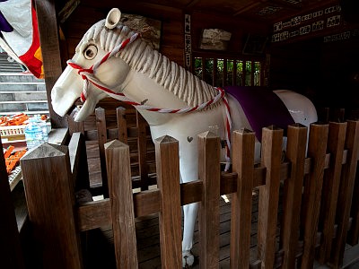 義貞霊馬堂は平成11年改築。新田義貞が鎌倉攻めに際して当寺で戦勝祈願して愛馬を寄進した故事に基づく。堂内には神馬像のほか、絵馬などが奉納されている。