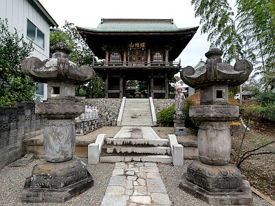 山門は江戸前期の1694年建立。所沢市指定有形文化財。