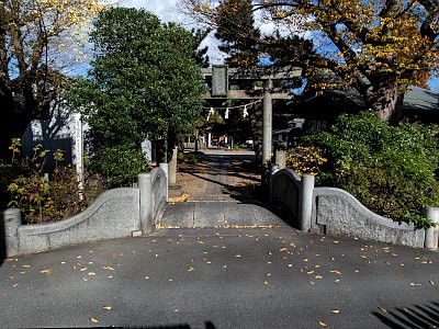 一ノ鳥居前の太鼓橋は大正11年築造。かつてはこの下を水路が流れた。