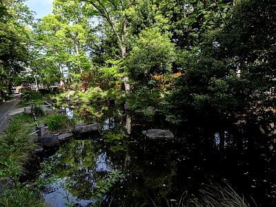 神池は、蕨城の水堀(御殿堀)の遺構。畔には弁天社の祠も立つ。