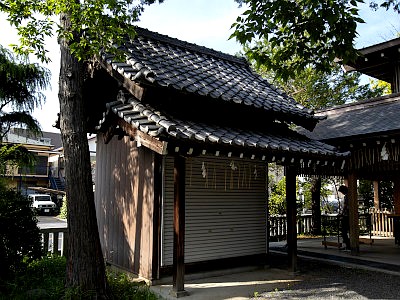 神社会館は、第一蕨尋常高等小学校(現・蕨北小学校)に大正11年に竣工した校舎の一部を昭和32年に境内に移築し、更に同60年に縮小改築したもの。